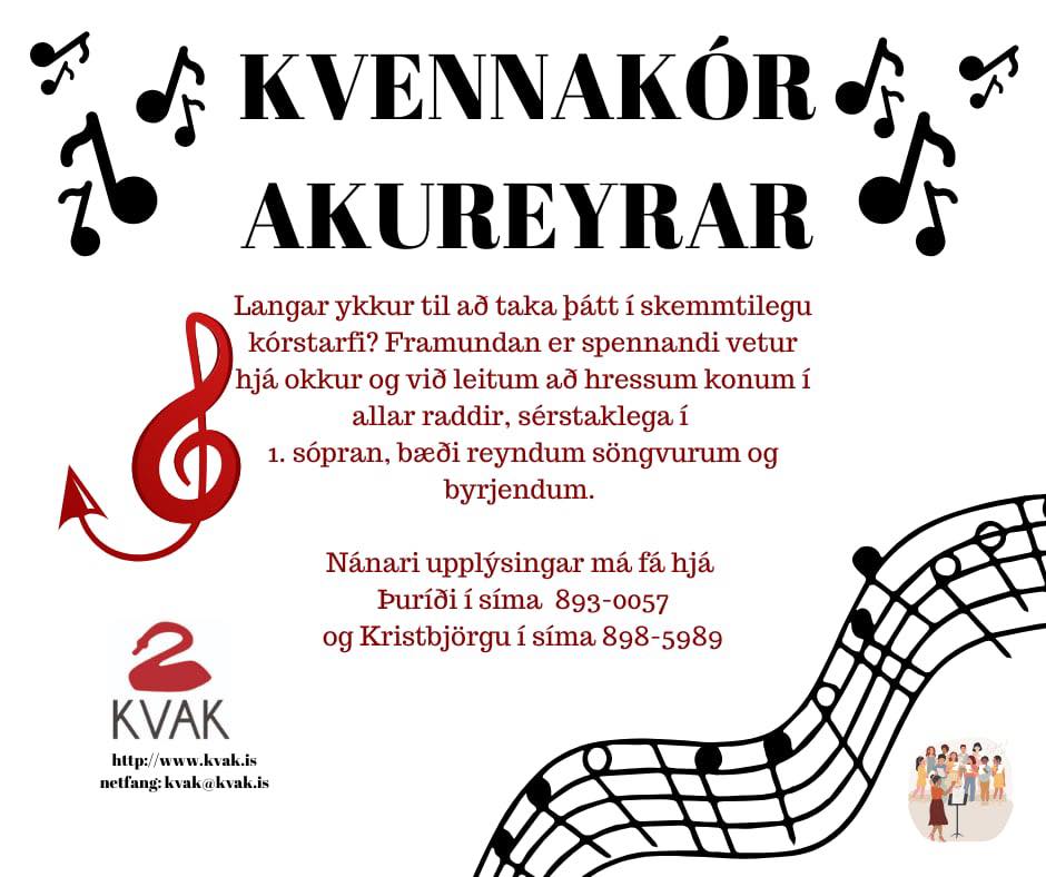 Aðalfundur Kvennakór Akureyrar verður haldinn í Brekkuskóla 9. október kl. 18:30
